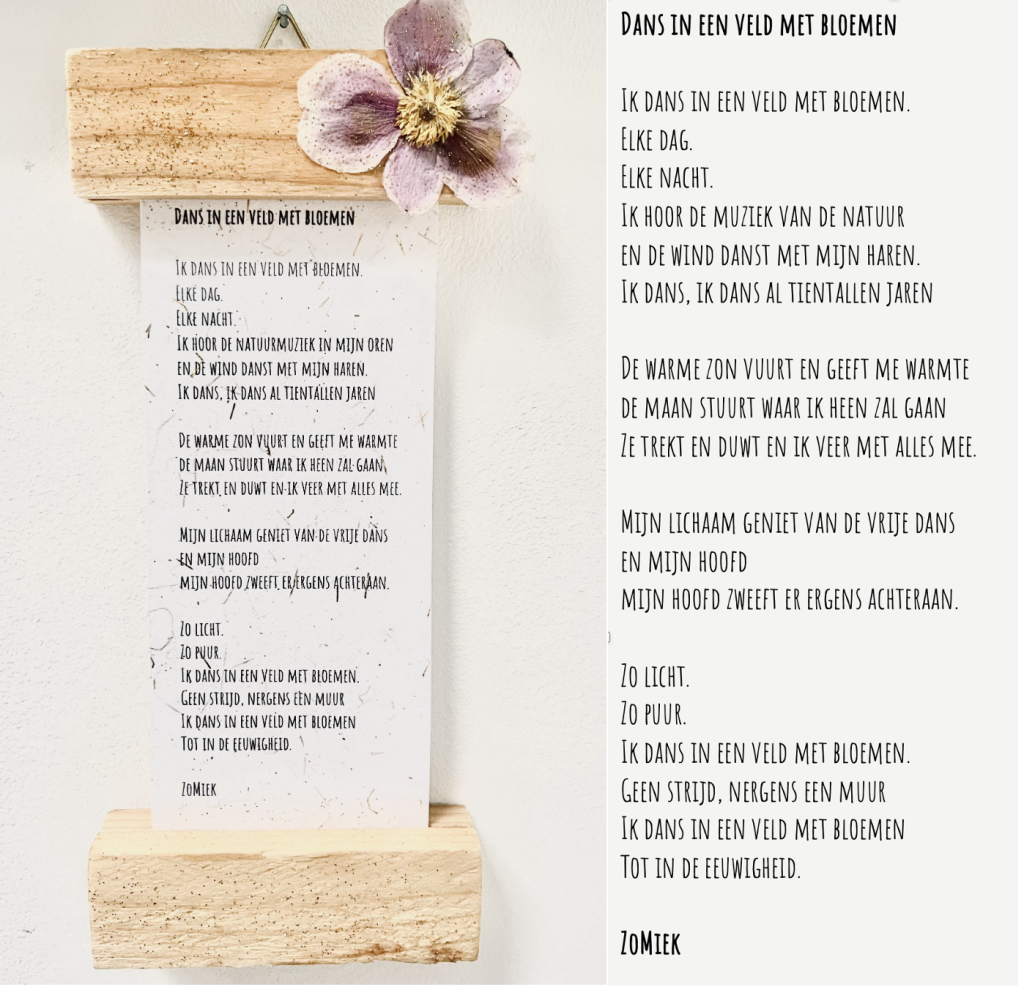 Dans in een veld met bloemen Dans in een veld met bloemenSchilderij: Collectie FlowerPower – 15 – Veld met bloemen(schilderij is verkocht). Ik wil dit gedichtje kopen