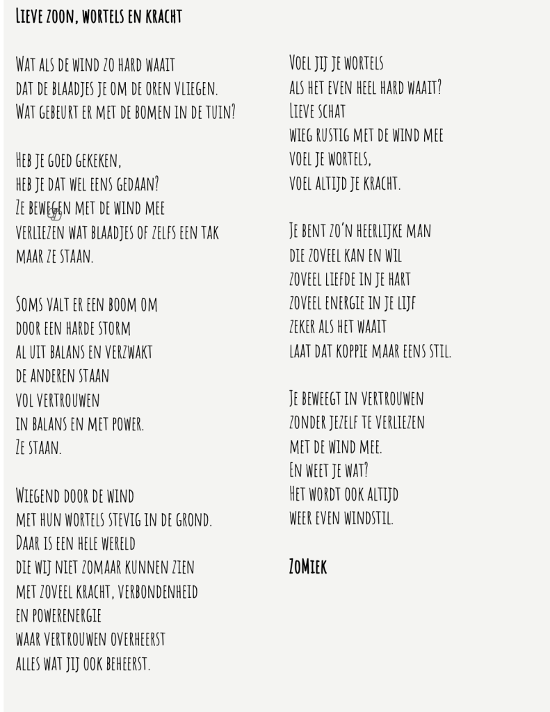Lieve zoon, wortels & kracht